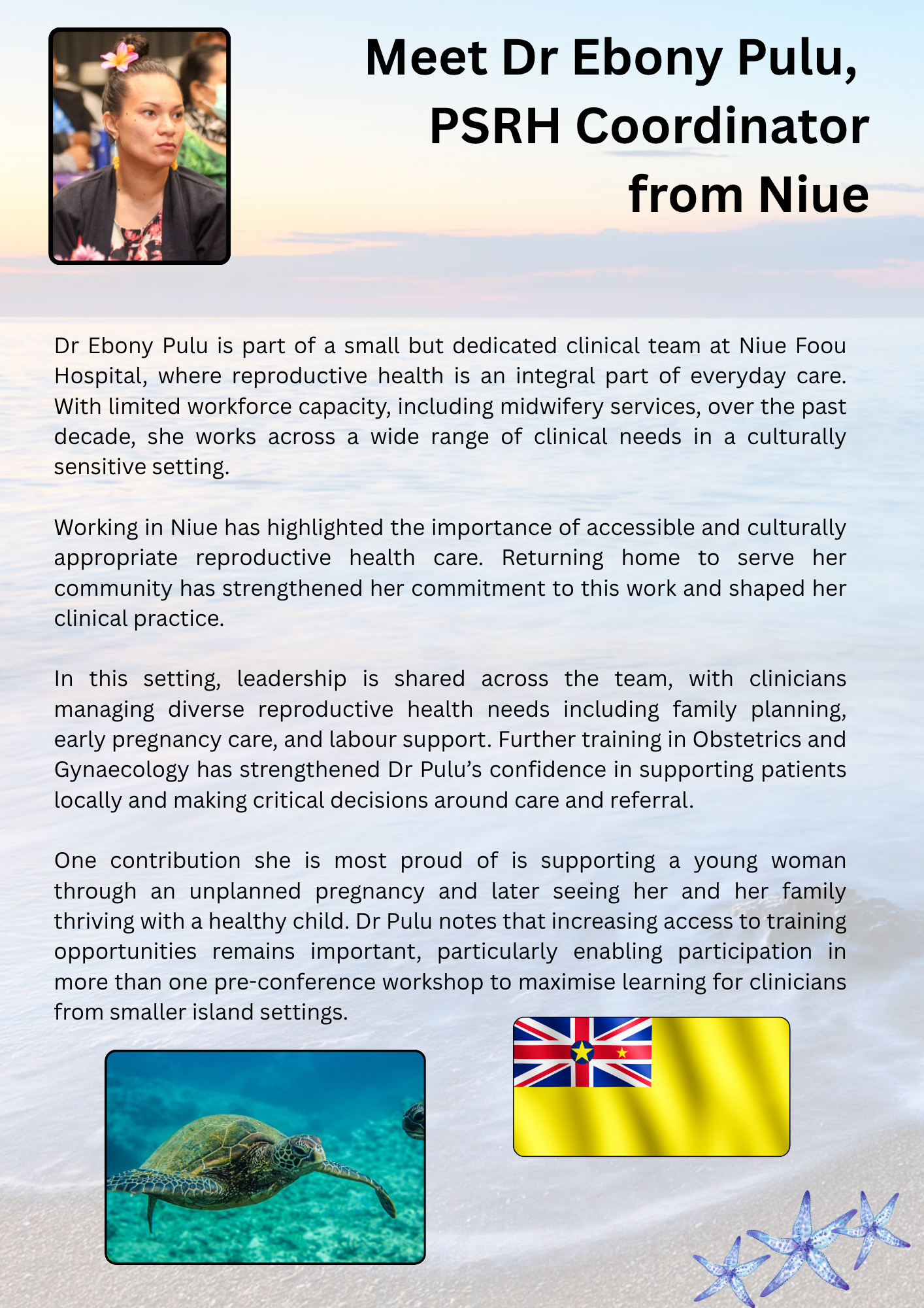 The Pacific Society for Reproductive Health (PSRH) Country Coordinators are key representatives who connect our mission to the communities and health systems across the Pacific Island Countries (PICs). These dedicated professionals, including Obstetricians, Gynaecologists, and Midwives, serve as vital links between PSRH and their respective countries, ensuring seamless communication, collaboration, and resource sharing.